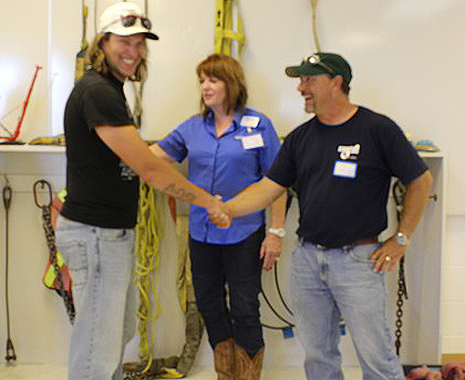 Operators who competed in the skills competition had to complete three tests using a 45-ton Manitex boom truck supplied by X-Factor Oilfield Services. The three tests included lowering the crane’s hook into empty drums without knocking the barrel over, picking up a 45-gallon drum filled with water and weaving it through a slalom course without lifting the chain attached to the bottom of the drum off the ground, and lifting a steel pipe vertically and lowering it horizontally in the opposite direction without knocking over pylons, which gave the operator 1-ft. of wiggle room around the pipe for the landing position.