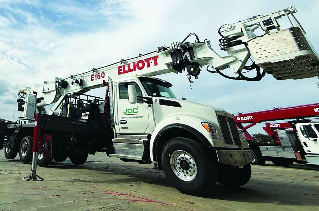 “At Elliott Equipment we continue to push the limits of utility construction technology with our new self-leveling, rotating material-handling platform, now available on E-Line aerials with 145-, 160- and 190-foot tip heights,” said Jim Glazer, president & CEO. “While many long-boom cranes rely on gravity-leveled platforms, this design brings a smarter, safer and more productive solution to high-reach applications.”