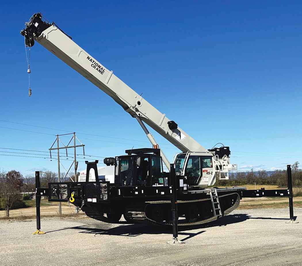 At National Crane, the boom truck product line consists of 24 models ranging from 10- to 60-ton capacities with maximum tip heights from 66 to more than 200 feet. Recently, the company launched their new National Crane NTV45-2 model, a 45-ton capacity crane mounted on a tracked Prinoth T22 chassis. The crane is equipped with a 142-foot main boom and is capable of a 200-foot platform height.