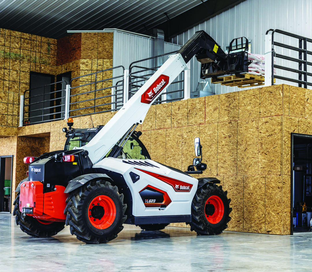 The Bobcat TL623 telehandler is a compact machine designed to deliver strong lift performance and versatility across a range of applications, including construction, agriculture, landscaping and snow removal. With a 6,000-pound lift capacity and 23-foot lift height, it provides the reach needed to place materials, load trucks or build and manage snow piles. Despite this capability, its compact footprint at 82.7 inches wide and 84.3 inches high allows it to maneuver through tight spaces, buildings and confined jobsites. The machine also offers up to 13 feet, three inches of forward reach and travel speeds up to 18.3 miles per hour to support efficient material handling and repositioning.