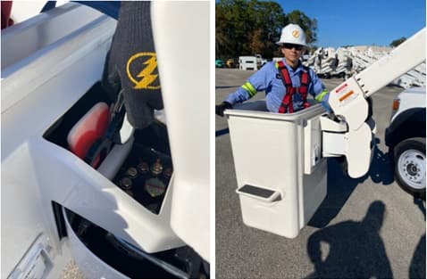 The Terex Positive Attachment Lanyard warning device, or “PAL in the Bucket” opt...